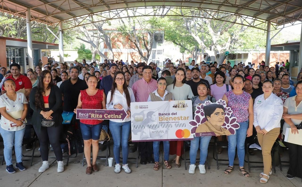 La presidenta de Manzanillo, Rosi Bayardo, participó en la entrega de tarjetas del Banco del Bienestar a madres y padres de estudiantes de la secundaria Ricardo Flores Magón, quienes el próximo mes recibirán su Beca Rita Cetina, un apoyo que el Gobierno de México, encabezado por la Dra. Claudia Sheinabum, pone en marcha para apoyar los sueños de las y los adolescentes, y el esfuerzo que las familias hacen para que vayan a la escuela.