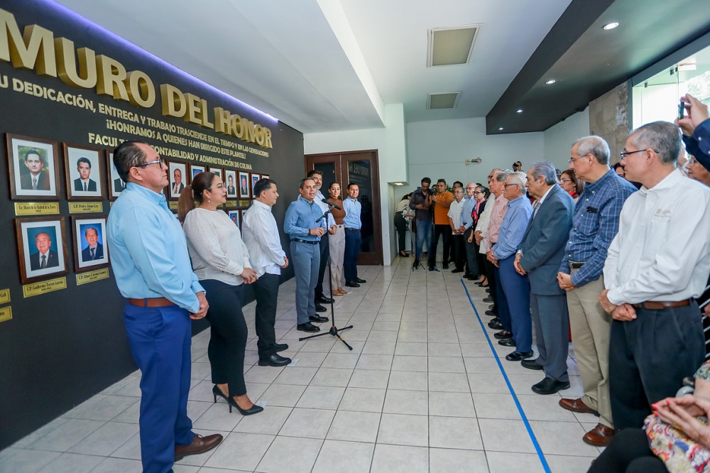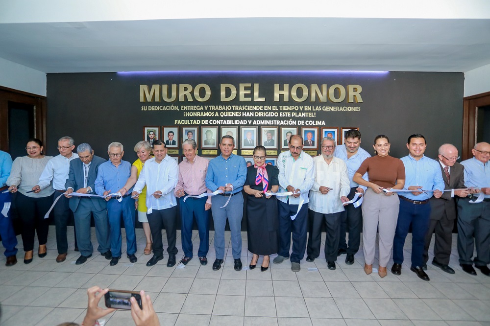 El rector de la Universidad de Colima, Christian Jorge Torres Ortiz Zermeño, develó el Muro del Honor de las y los ex directores de la Facultad de Contabilidad y Administración de Colima, en el vestíbulo del Auditorio “Carlos de la Madrid Virgen”, este miércoles por la mañana. Esto como parte del 63 aniversario de dicho plantel.