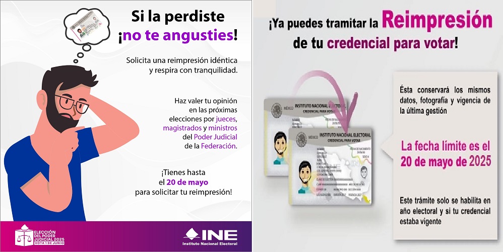 La ciudadanía que haya solicitado una reimpresión, y quienes lo hagan hasta el 20 de mayo, tendrán como fecha límite para acudir por ella al módulo donde la solicitaron, el 30 de mayo de 2025, y si no acuden por ellas, serán resguardadas.