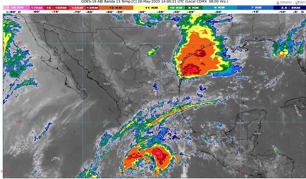 De acuerdo con el reporte emitido la mañana de este miércoles por el Servicio Meteorológico Nacional (SMN), la zona de baja presión mantiene 100% de probabilidad de desarrollo ciclónico, se localiza a 500 kilómetros al sur de Guerrero y a 520 kilómetros al sur de Michoacán, de acuerdo a los modelos y los análisis la distancia continúa siendo considerable, por lo que este fenómeno permanecería paralelo a las costas de Colima.