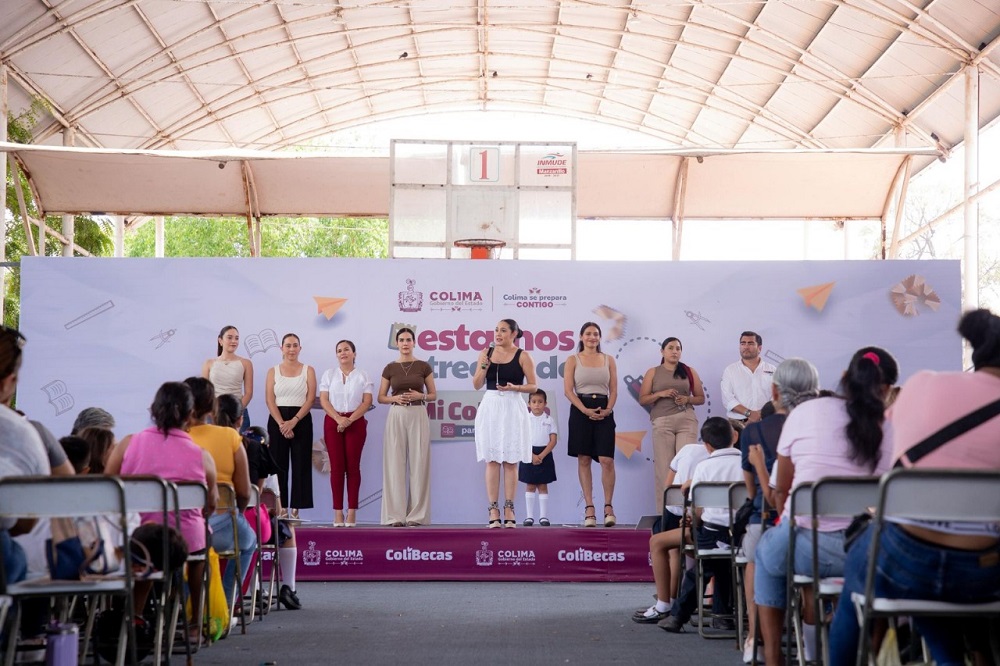 La gobernadora Indira Vizcaíno Silva continúa este miércoles la entrega de medios de pago del programa Mi ColiBeca para Empezar a estudiantes de preescolares y primarias públicas del municipio de Manzanillo, donde sólo este día la reciben 3 mil 137 alumnas y alumnos, en compañía de sus padres, madres o personas tutoras.