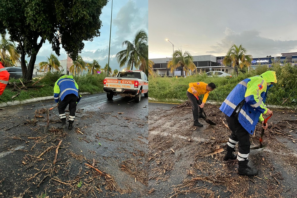 Hasta las 8:00 de la noche de este 17 de agosto, se registran 25 reportes de árboles caídos, principalmente en los municipios de Colima, Villa de Álvarez, Comala y Cuauhtémoc, todos están siendo atendidos por las respectivas Unidades Municipales de Protección Civil y las direcciones de Servicios Públicos Municipales.