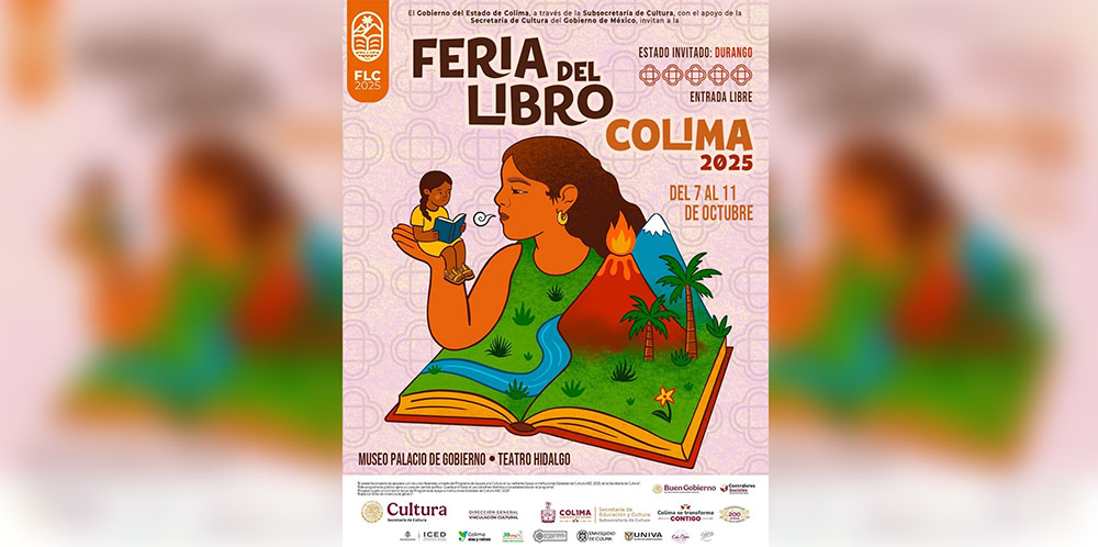 Del 7 al 11 de octubre, la Feria del Libro Colima (FLC) 2025 se efectuará en Museo Palacio de Gobierno y el Teatro Hidalgo, ofreciendo 75 actividades gratuitas para públicos diversos, con una cartelera que se conforma gracias a instituciones estatales y nacionales sumadas a la iniciativa de la Subsecretaría de Cultura del Gobierno del Estado de Colima, en coordinación con la Secretaría de Cultura del Gobierno de México, a través del programa federal de Apoyos a las Instituciones Estatales de Cultura.