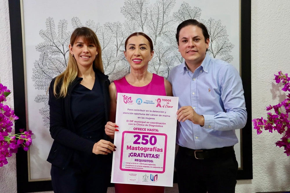 Para contribuir en la detección oportuna del cáncer de mama, la Presidenta Tey Gutiérrez Andrade anunció la realización de 250 mastografías gratuitas para igual número de mujeres de Villa de Álvarez.