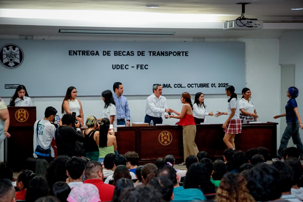 En una ceremonia realizada este miércoles por la tarde en el auditorio de la Facultad de Ciencias de la Educación del campus central, la Universidad de Colima y la Federación de Estudiantes Colimenses (FEC) entregaron 300 becas de transporte, a estudiantes de la UdeC, del Tecnológico de Colima y del Instituto Superior de Educación Normal del Estado de Colima (ISENCO).