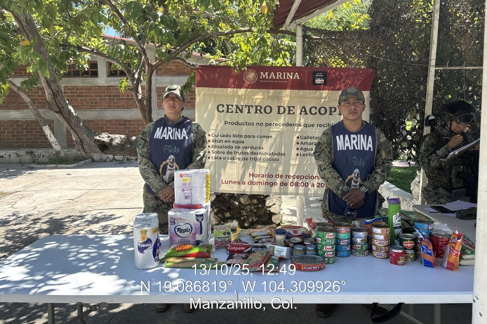 Manzanillo, Col. La Secretaría de Marina (SEMAR), dio a conocer la activación de Centros de Acopio en Manzanillo como parte de la implementación del Plan Marina, con el propósito de brindar apoyo a la población damnificada por los recientes fenómenos meteorológicos que han afectado a diversas zonas del país.