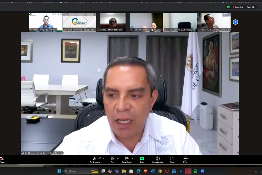 En la conferencia en línea también estuvieron, por la UdeC, Joel Hino Jr., secretario general, Priscilia Álvarez, directora general de Recursos Humanos, Francisco Ventura, representante ante la Región Centro-Occidente de ANUIES y secretario técnico. Por parte de la RCO ANUIES estuvieron: Samantha Narváez, secretaria técnica de la Red de Gestión de la Calidad y la mejora continua y María José Garavito, coordinadora ejecutiva del Sistema de Evaluación y Acreditación de la Educación Superior (SEAES).