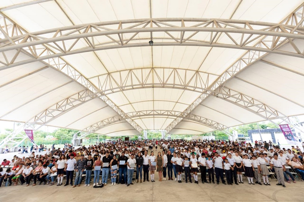 La gobernadora de Colima, Indira Vizcaíno Silva, entregó 2 mil 349 ColiBecas Computadoras a estudiantes de secundaria y nivel profesional de Tecomán, en eventos realizados este martes en el Parque Metropolitano; la mandataria dijo que su gobierno ha buscado invertir muchísimo en la educación de las juventudes por dos razones: porque quiere que alcancen sus sueños y para demostrar con hechos que el Gobierno del Estado de Colima tiene una visión distinta a las administraciones del pasado, donde no existían programas de apoyo a las y los estudiantes.