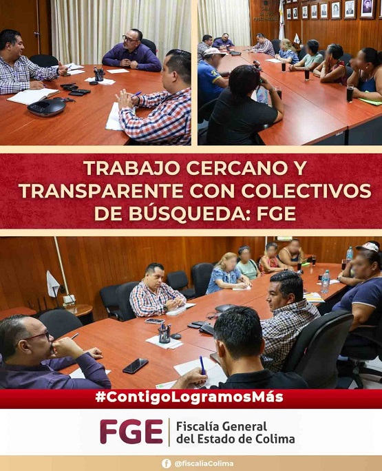 En la reunión, realizada en las instalaciones de la FGE, estuvieron presentes también el Fiscal Especializado en la Investigación en Materia de Desaparición de Personas, Héctor Javier Peña Meza, el titular de la Unidad Especializada en Combate al Delito de Secuestro (UECS), José Beltrán Araiza, así como representantes de los colectivos Red Desaparecidos en Colima A.C.