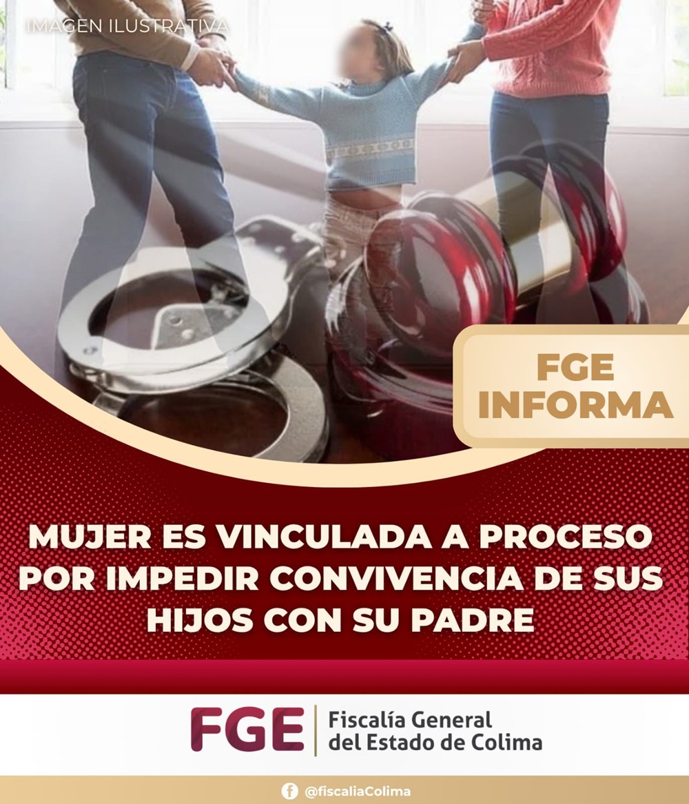 De acuerdo con los datos de prueba aportados por el agente del Ministerio Público, desde el año 2024, tras la separación del padre con la imputada, ésta le impidió convivir con sus hijos, a pesar de existir un convenio de convivencia autorizado por el Juzgado de lo Familiar en Colima. Asimismo, se estableció que la mujer tramitó posteriormente una orden de protección ante el Juzgado Auxiliar de lo Familiar, con la finalidad de obstaculizar los derechos de convivencia de los menores con su padre, afectando su sano desarrollo emocional.
