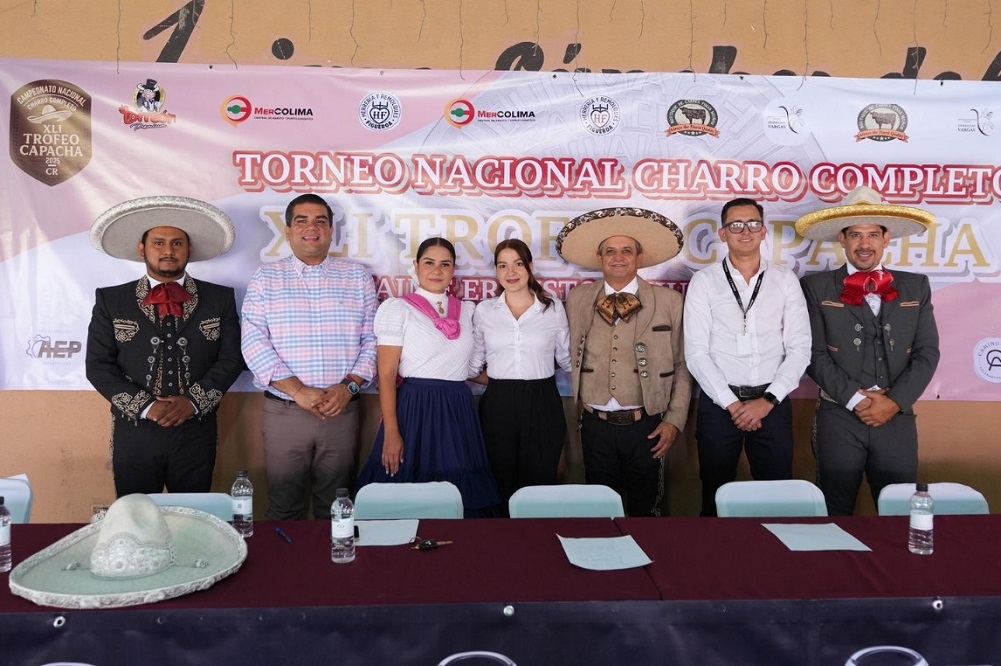 El presidente de la Asociación de Charros de Camino Real, Daniel Orozco Espíritu, acompañado del director general del Instituto de Fomento de Ferias y Exposiciones (Iffecol) del Gobierno del Estado de Colima, Rodolfo Aguilar Dávalos, dieron a conocer el programa de competencia del XLI Torneo Nacional de Charro Completo ‘Trofeo Capacha’, que se desarrollará en el Lienzo Charro Camino Real del 9 al 16 de noviembre, dentro de la Feria de Todos los Santos 2025.