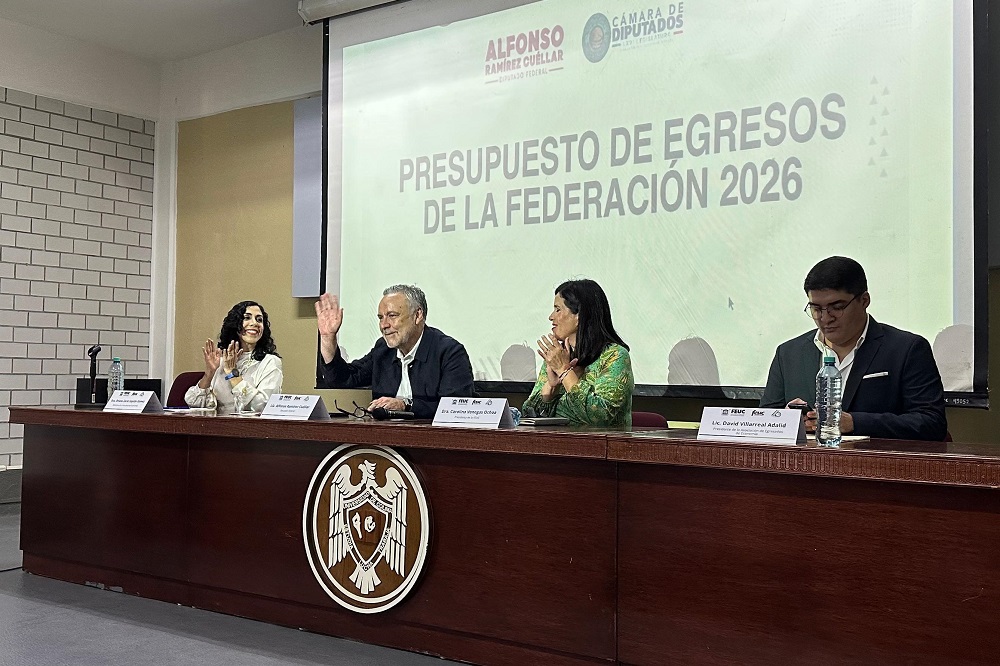 En el marco del 46 aniversario de la Facultad de Economía de la Universidad de Colima, la Asociación de Egresados de Economía, que preside David Villarreal Adalid, organizó la conferencia: “Presupuesto público 2026”, impartida por el diputado federal por Morena, Alfonso Ramírez Cuéllar.