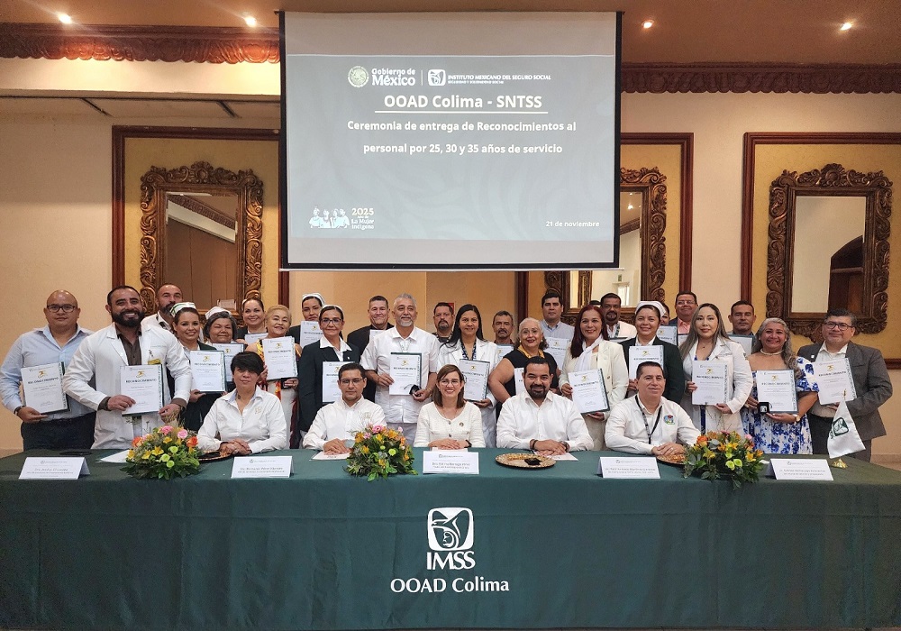 El Instituto Mexicano del Seguro Social (IMSS) en Colima llevó a cabo la Ceremonia de Reconocimiento al Mérito Laboral para honrar a las y los trabajadores que han cumplido 25, 30 y 35 años de servicio. El evento destacó la trayectoria, entrega y vocación institucional de quienes, durante décadas, han contribuido al fortalecimiento del Seguro Social y al bienestar de la población derechohabiente.