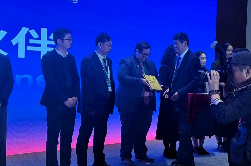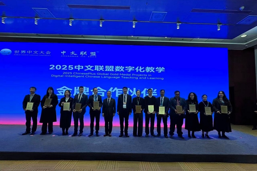 Aaron Radillo informó que este mes noviembre participó en la World Chinese Language Conference, organizada por la Alianza Global del Idioma Chino y Continental Han Feng Network Technology (Beijing) Co., Ltd., donde la institución recibió el premio Socio de Medalla de Oro por su destacada implementación del programa.