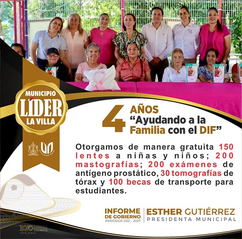 "En apoyo a los grupos vulnerables, desde el DIF Municipal este año otorgamos de forma gratuita 150 lentes a niñas, niños y adolescentes; realizamos 200 mastografías para la detección oportuna del cáncer de mama; 200 exámenes de antígeno prostático para varones, y 30 tomografías de tórax para la detección oportuna de cáncer de pulmón", señaló la Alcaldesa.