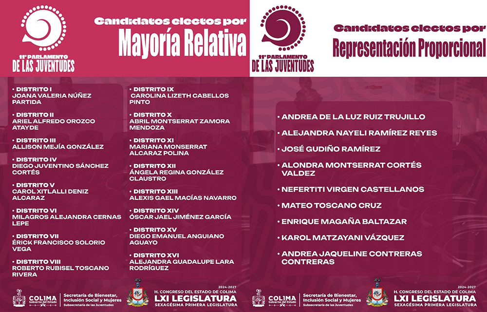 Esta edición reunirá a 25 representantes de los diez municipios de Colima, quienes participarán como diputados juveniles por un día, con la responsabilidad de presentar sus intereses, preocupaciones y propuestas en torno a temas clave que impactan al sector juvenil y a la población colimense en general.