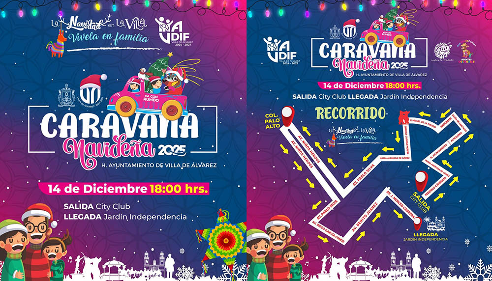 El Ayuntamiento de Villa de Álvarez que encabeza la Presidenta Tey Gutiérrez invitó a disfrutar de la Caravana Navideña 2025, que recorrerá las principales avenidas de la cabecera municipal, llevando alegría y diversión a todas las familias.