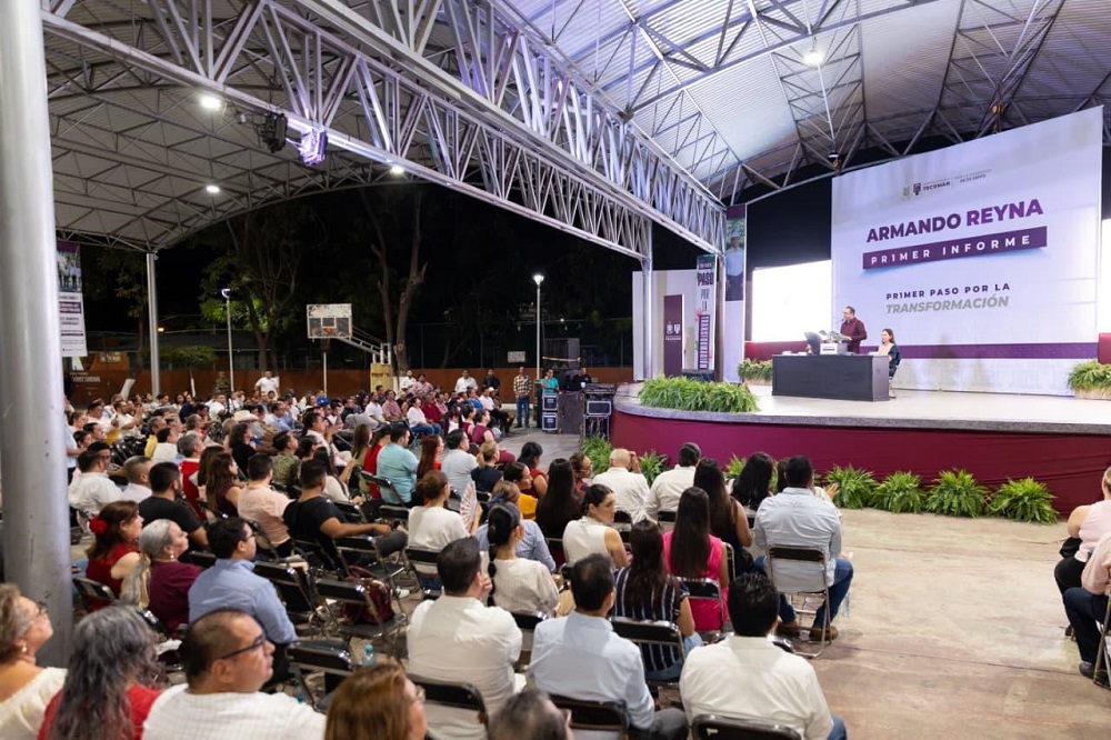 Tecomán, Col. La gobernadora de Colima, Indira Vizcaíno Silva, acudió al Primer Informe de Gobierno del presidente municipal de Tecomán, Armando Reyna mañana, que se realizó este sábado por la tarde en el Parque 'Gral. Jesús González Lugo', donde la mandataria estatal destacó la coordinación y disposición con la que se ha trabajado con el ayuntamiento tecomense durante este tiempo.