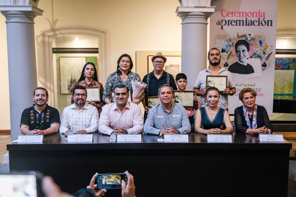 Entre los galardonados destacaron la profesora e investigadora de la Facultad de Letras y Comunicación, Ada Aurora Sánchez Peña, quien obtuvo la Medalla Poeta “Griselda Álvarez Ponce de León”, mientras que el primer lugar del Cartel del Festival lo obtuvo Guadalupe Villicaña y el primer lugar de cuento ilustrado “La sombra niña”, fue para Mateo de Jesús Bautista Lam.