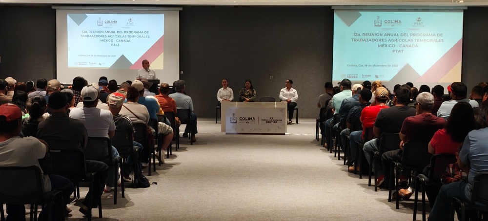 Como parte de las acciones del Gobierno del Estado de Colima para garantizar información oportuna a quienes participan en el Programa de Trabajadores Agrícolas Temporales (PTAT) México-Canadá, la Secretaría de Desarrollo Económico (Sedeco), la Subsecretaría del Trabajo y el Servicio Nacional de Empleo (SNE) realizaron la Reunión Anual 2025. Durante el encuentro, las y los asistentes conocieron los requisitos actualizados y los ajustes previstos para el ciclo 2026.