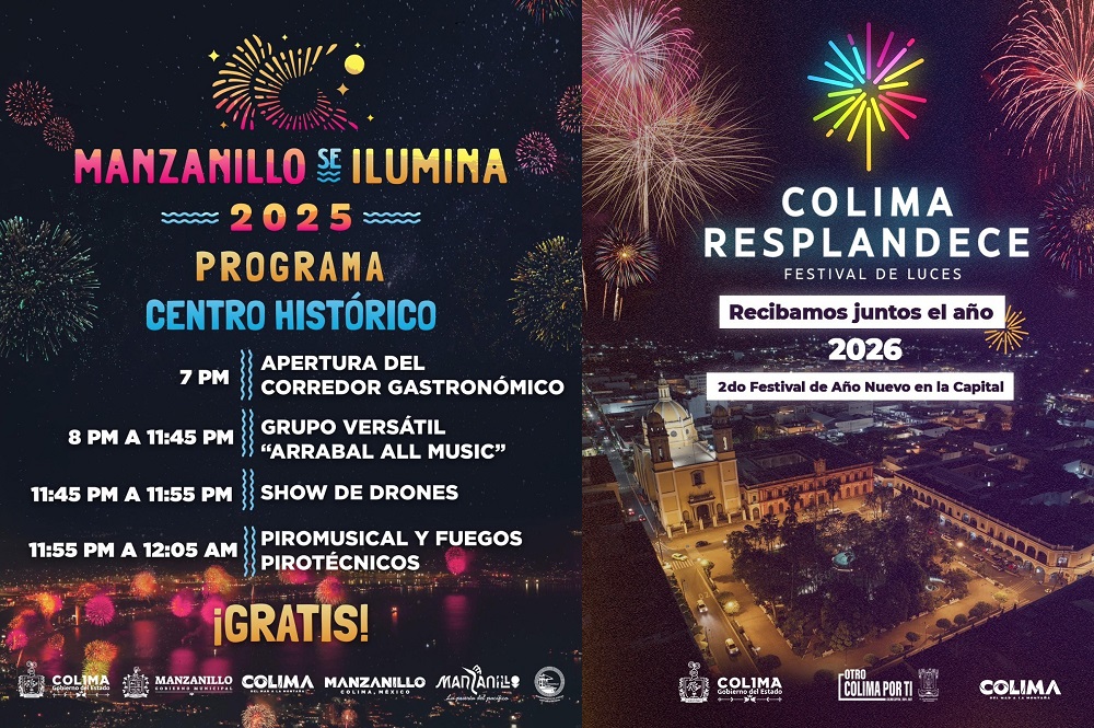 *El Puerto de Manzanillo y la capital del estado celebrarán en grande la llegada del año nuevo con dos eventos que iluminarán la noche con luces, música, fiesta y alegría