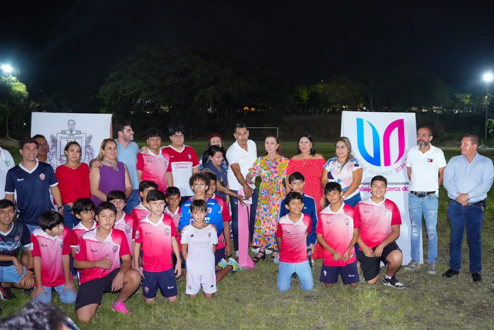 La Presidenta Tey Gutiérrez Andrade entregó a deportistas y a vecinos y vecinas la obra de equipamiento de alumbrado público en la cancha de futbol de la colonia Alfredo V. Bonfiil, obra realizada con recursos del Fondo de Apoyo a la Infraestructura Social Municipal.