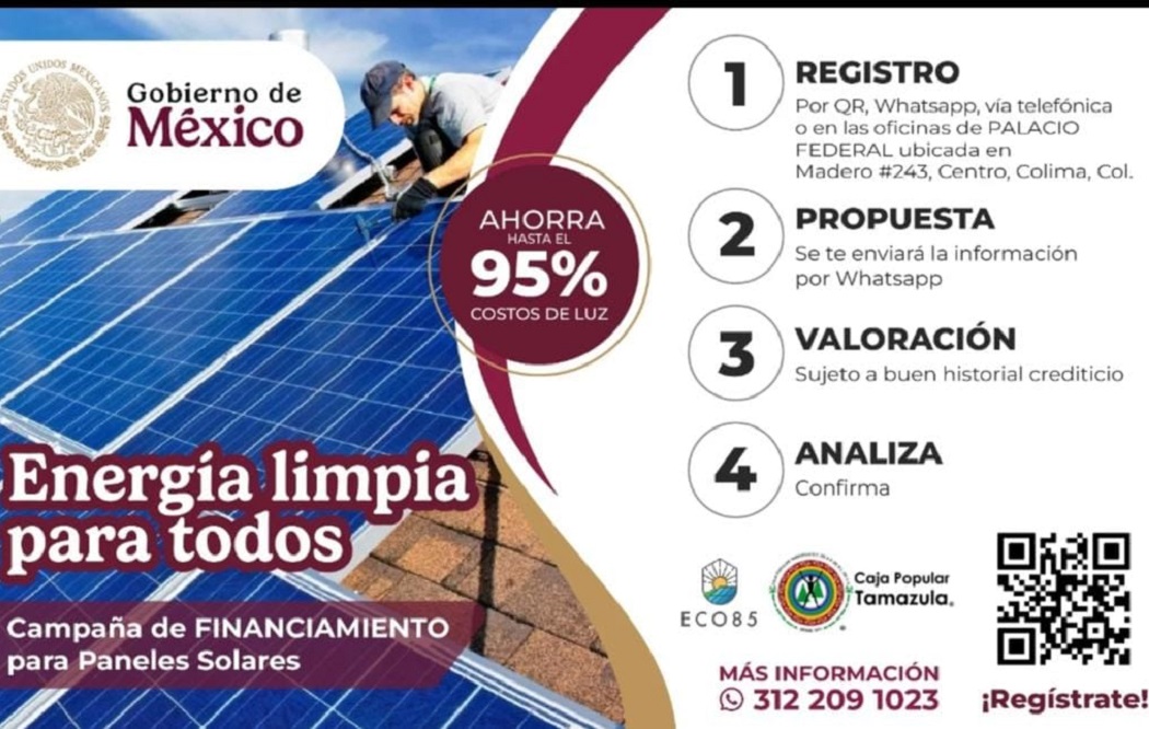 La empresa Eco85, presentó la campaña de financiamiento para la adquisición de paneles solares denominada “Energía Limpia para Todos”, dirigida tanto a hogares como a negocios y empresas, la cual estará vigente durante los meses de enero, febrero y marzo.