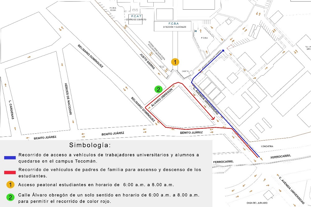 La delegada de este campus, Ana Lilia Moreno Osegueda, explicó que, ante la alta concentración de vehículos que se registra en los horarios de entrada y salida, se optó por mantener la misma estrategia, ya que permitió ordenar el acceso y evitar congestionamientos mayores.