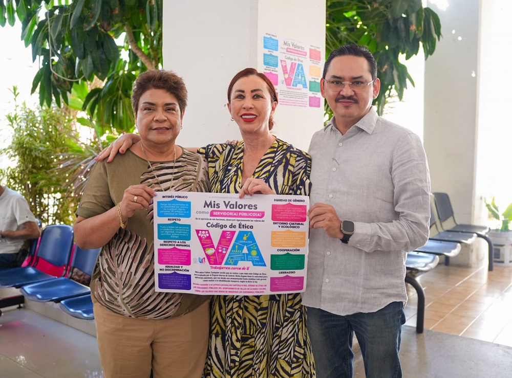 Acompañada por el y la dirgente de los dos sindicatos de trabajadores municipales, la Presidenta Tey Gutiérrez Andrade inició la campaña Mis Valores como Servidor Público, la cual difunde, sensibiliza y capacita a la plantilla laboral sobre el Código de Ética de las y los Servidores Públicos del Ayuntamiento de Villa de Álvarez.