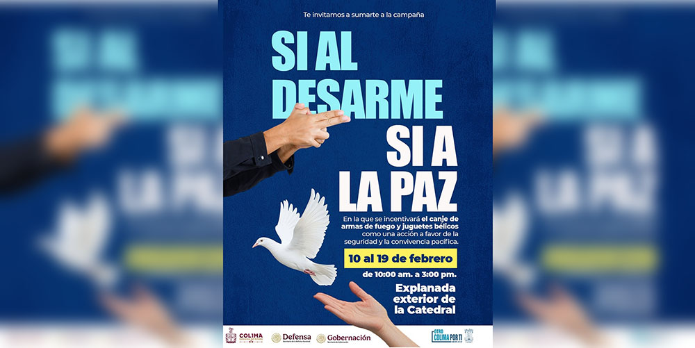 A través de este programa, donde participan el Gobierno Federal, a través de la delegación de la Secretaría de Gobernación y la Secretaría de la Defensa Nacional, el Gobierno del Estado y el Ayuntamiento de Colima, realizarán una campaña de canje de armas y juguetes bélicos, en donde se invita a la ciudadanía a que acudan a entregar algún tipo de arma, donde podrán recibir un apoyo económico, en tanto que los menores, acompañados de sus padres o tutores, se acerquen a canjear sus juguetes bélicos, recibirán otro tipo de obsequios.