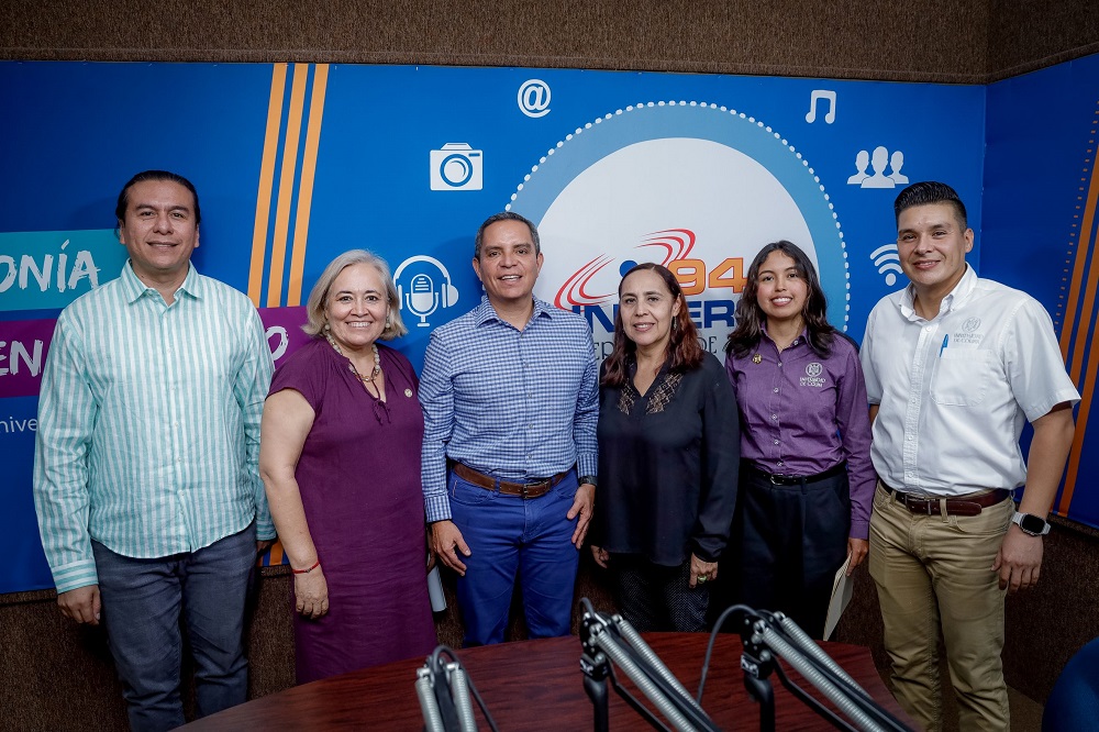 Este jueves 19 de febrero, el rector de la Universidad de Colima, Cristian Torres Ortiz Zermeño, asistió como invitado al primer programa radiofónico “Saberes con voz”, una producción de la Coordinación General de Docencia y Radio Universo 94.9, que en esta ocasión fue conducido Susana Preciado, coordinadora general de Docencia.