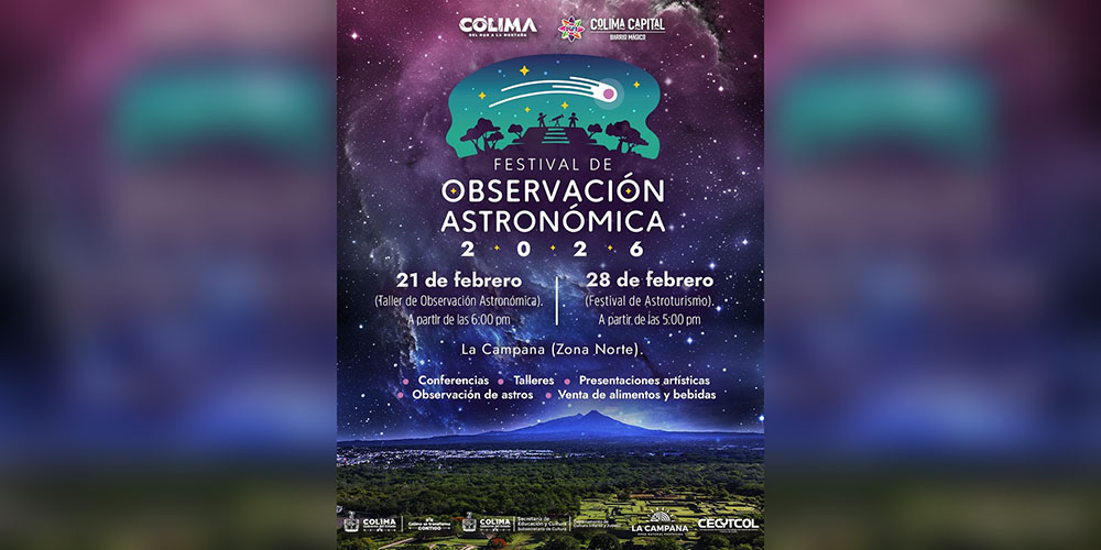 Con el objetivo de acercar la ciencia y la astronomía a la población en un entorno natural y familiar, el Gobierno del Estado de Colima que preside la gobernadora Indira Vizcaíno Silva, a través del Consejo Estatal de Ciencia y Tecnología, en coordinación con las subsecretarías de Cultura y de Turismo, invita al Festival de Observación Astronómica, que se llevará a cabo los sábados 21 y 28 de febrero, en el Parque Ecológico ‘La Campana’, en la zona norte.