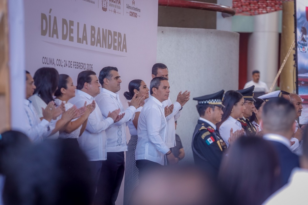 El rector de la Universidad de Colima, Christian Torres Ortiz Zermeño, participó este martes 24 de febrero en la ceremonia estatal conmemorativa por el Día de la Bandera y en el abanderamiento de escoltas, celebrada en la explanada del Complejo Administrativo de Gobierno del estado. Fue encabezada por la gobernadora Indira Vizcaíno Silva.