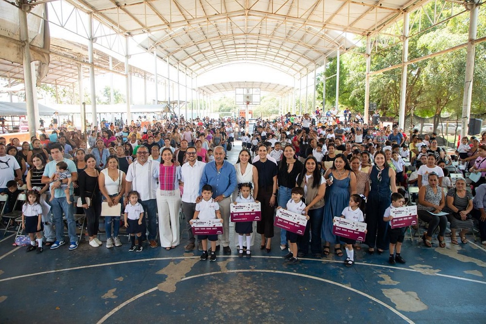 En esta entrega realizada en la unidad deportiva ‘Jaime Tubo Gómez’, se beneficiaron 815 niñas y niños de preescolar, provenientes de 72 planteles educativos públicos, quienes recibieron este medio de apoyo que contribuye a la economía familiar y al acceso a la educación desde los primeros años.