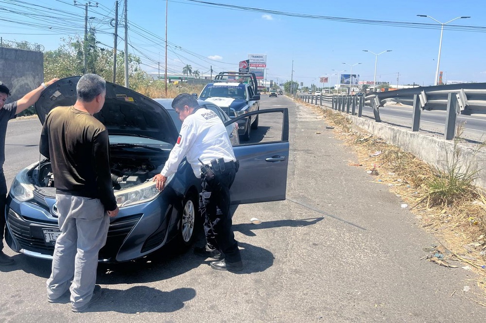 Como parte de las acciones permanentes de atención y auxilio a la ciudadanía, la Policía Municipal de Colima, a través de un agente de Tránsito y Vialidad, brindó apoyo oportuno a un conductor que presentó fallas mecánicas en su vehículo mientras circulaba sobre el Libramiento Ejército Mexicano.