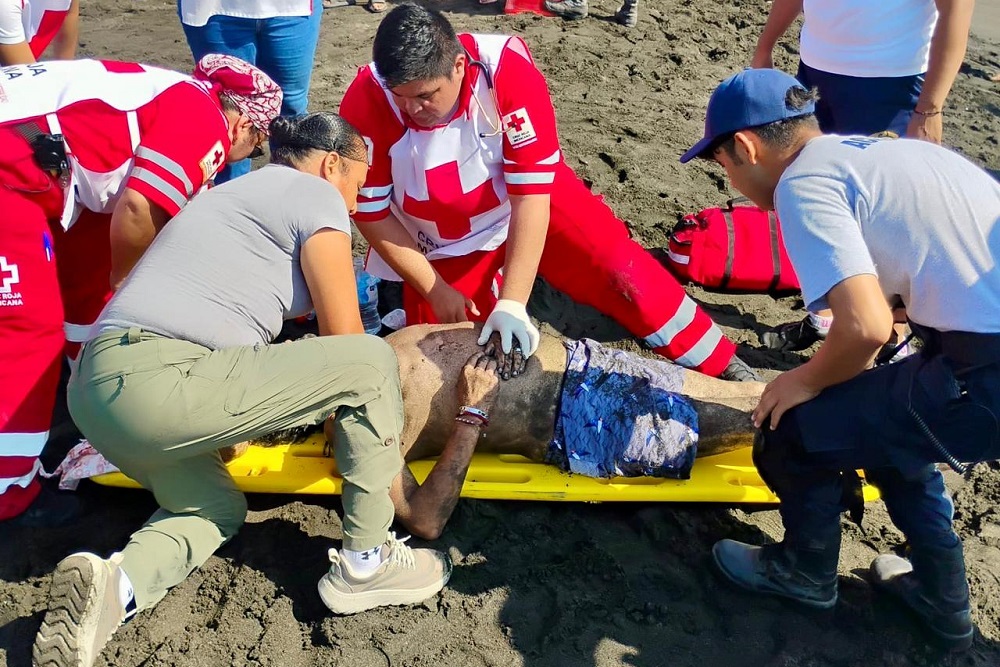 Tecomán, Col. Un hombre fue rescatado este sábado por la tarde luego de sufrir una inmersión en el mar en la playa de Pascuales, en el municipio de Tecomán.
