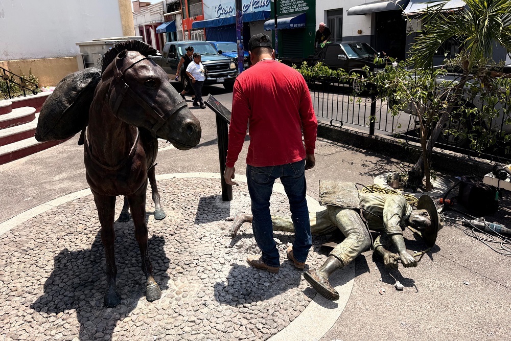 El alcalde de Colima, Riult Rivera Gutiérrez, informó que la escultura de ‘El Arriero’, del artista Gil Garea, recientemente dañada, fue retirada temporalmente para someterla a trabajos de restauración y posteriormente reinstalarla en condiciones óptimas de seguridad y conservación.