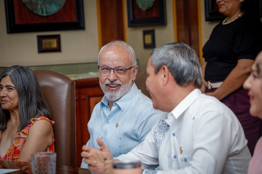 Reunidos en la Sala de Juntas de Rectoría con parte de sus equipos de trabajo, ambos rectores comentaron los retos y las similitudes de ambas casas de estudio, no sólo en cuanto al tamaño de sus respectivas entidades, sino en los logros académicos, científicos y culturales, y en los retos que enfrentan y enfrentarán en los años por venir.
