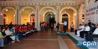 En la ceremonia que tuvo lugar en el patio central de Palacio de Gobierno, Rueda Sánchez resaltó los esfuerzos realizados por la administración de Anguiano Moreno por contribuir y consolidar una política pública de protección civil que permita actuar con anticipación de manera eficaz y oportunamente.
