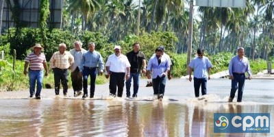 Posteriormente, el gobernador se trasladó al bordo “El Rincón”, ubicado en el Ejido Chavarín, colindante con Jalisco, donde en coordinación con los delegados federales se acordó trabajar de manera inmediata en su reconstrucción, ya que dicho bordo protege al dren que evita el desbordamiento del rio Marabasco y llegue el agua hasta la carretera que da acceso al Aeropuerto.