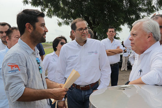 En la Granja Acuícola Aquafrutas, ubicada en el municipio de Tecomán, Peralta Sánchez y las autoridades invitadas recorrieron las instalaciones y observaron los sistemas de producción con que cuenta esta granja camaronera.