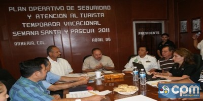 ARMERIA, COLIMA.- El Presidente Municipal Ernesto Márquez Guerrero, acompañado por funcionarios, sostuvo la primera reunión para integrar el plan operativo de seguridad y atención al turista, para la temporada vacacional de la semana santa y pascua.