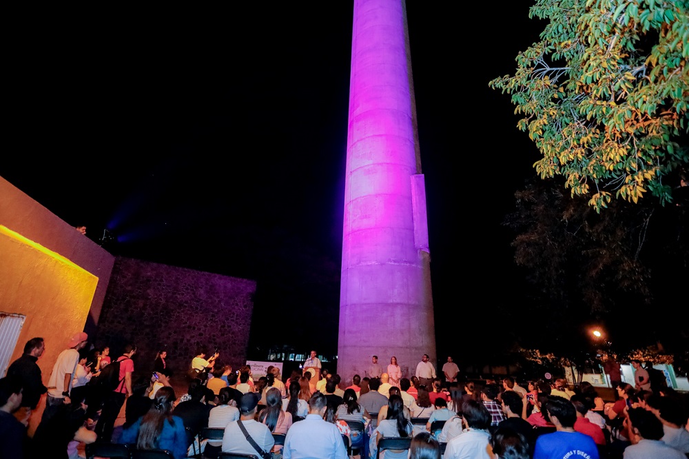 Iluminan de rosa el chacuaco del antiguo ingenio de San Rafael, en la semana contra el cáncer de mama
