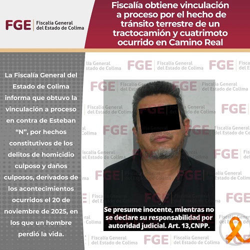 Fiscalía obtiene vinculación a proceso por el hecho de tránsito terrestre de un tractocamión y cuatrimoto ocurrido en Camino Real